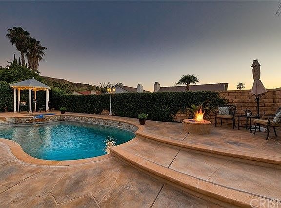 Don't Miss this Gorgeous 3,200 sq ft Entertainers Pool Home in Saugus! This Spacious home boasts 4 Bedrooms and 3 Full Baths, of those, 1 Bedroom and 1 Full Bath downstairs. A Huge upstairs Entertainers Room includes a Wet Bar with potential to put up a wall for a 5th and 6th Bedroom! The Brick framing around the Stove Top really puts the finishing touch on the Amazing Kitchen with the Walk-In Pantry. You can't miss the High Soaring Ceilings in the Formal Living Room and Dining Room as soon as you walk in the Home. The Backyard will make you say WOW as soon as you walk out under the Covered Patio with a Built In BBQ, Stone Wall for the mounted TV and Dining Area. LED Colored Changing Lights in the Pool and Spa with a Spiraling Water Feature. Built in Fire Pit on one side of the pool with a Comfortable Gazebo on the Opposing Corner. The Tall Greenery on one side of the backyard Creates a very Private feel while enjoying the Beautiful Sunset!
