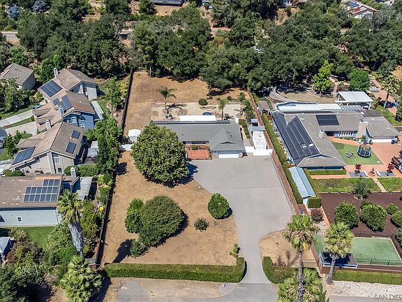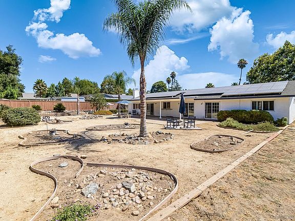 This Charming Ranch Style Home has been lovingly maintained by its current owners for 24 years. Nestled on over an acre of usable land, this property offers the perfect blend of spacious living and outdoor tranquility. Key Features include 4 Bedrooms, 3 Bathrooms, a functional layout with spacious living areas, and a formal dining room. The upgraded kitchen boasts custom cabinets, granite countertops, and newer stainless steel appliances. The large primary retreat features a walk in closet, dual sinks, and a clawfoot tub, adding a touch of luxury. This energy efficient home is all-electric, and comes with owned solar (46 panels) which were replaced in 2020, ensuring no SDG&E bills and eco-friendly living. HVAC was replaced in 2021, with double-paned windows and plantation shutters to enhance energy efficiency. The metal shingled roof, rated for 50 years, ensures long-lasting protection. The Outdoor Oasis includes a variety of fruit trees—orange, lemon, and apple, all supported by an irrigation system. The expansive driveway offers ample parking for RVs (with hook ups), boats, and recreational toys. Additionally, the spacious 3 car garage has tons of storage and is plumbed with an air compressor. Additional storage shed, and gated dog run on the side of the home. Plenty of space to add ADU, large pool, or anything your heart desires on this beautiful property. Located in one of Hidden Meadows' best areas, you can walk or drive to Boulder Oaks Golf Club, or well known local deli and restaurants. Minutes from the 15 freeway, this home is ready for the next growing family.