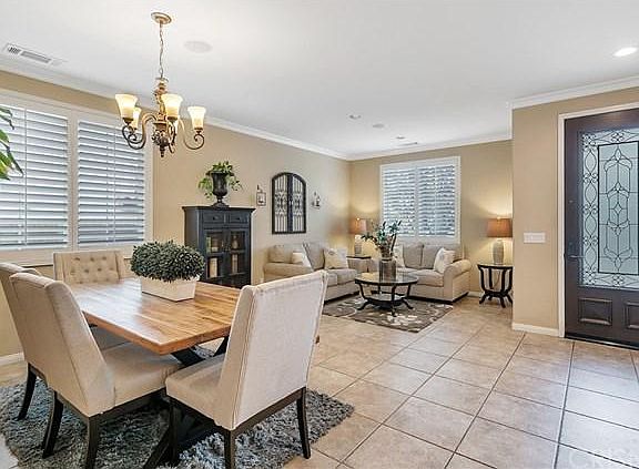 Come and see this beautiful single story pool home in Plum Canyons Blackberry Briar tract! Some of the great interior features include: Beautiful leaded glass entry door, crown molding, plantation shutters, tile flooring, open and bright floorplan, kitchen with beautiful granite counter tops, stainless appliances, breakfast bar, and under cabinet lighting, dining area in kitchen that opens to the family room which features a fireplace and media niche with built in cabinets, spacious master bedroom with slider to the backyard perfect for a late-night soak in the spa, private master bathroom complete with dual sinks, separate tub and shower, and walk-in closet, two additional bedrooms both with ceiling fans, hall bath with granite countertop, and more! Some of the awesome exterior features include: Entertainers yard with sparkling pool and spa with cascade water effect over the stone ledge steps, patio cover with ceiling fan, crushed glass fire pit, low maintenance hardscaped yard, stunning curb appeal with curved stairs and inlayed stone, and cul-de-sac location! With its close proximity to great schools, dining, shopping, and morethis will be a great place to call HOME!