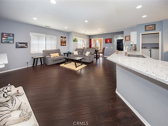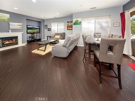 Welcome home to this beautifully upgraded two bedroom, two bathroom condo in Valencia! Upon entering you will immediately notice the gorgeous wood-like flooring, custom paint, recessed lighting and shutters. The spacious living room boasts a fireplace and mantel and is open to the dining area. The stunning chef's kitchen has wonderful granite counters, a walk-in pantry and a large breakfast bar. There are stainless steel appliances, and plenty of counter and storage space. The primary suite is located one one end of the unit, that has dual sinks and lovely tile flooring. The secondary bedroom is on the opposite end of the unit and also has good closet space. There is a hall bathroom off the dining area and close to the secondary bedroom. There is a laundry room upstairs as well. The relaxing patio off of the living area has a phenomenal view of the city. The HOA amenities include a sparkling pool and spa, a clubhouse, a park, and walking paths that lead you to sitting and fountain areas throughout the community. Conveniently located near shopping centers, restaurants, paseos, the 5 freeway, and award-winning schools. Don't miss this amazing property!