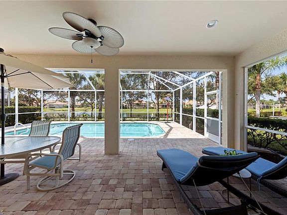 A truly special home on a premium hammerhead lot, featuring a private pool, peaceful backyard, and beautiful views of the water and Venetian bridges. This desirable Tifton model offers an expanded great room with an open floor plan—no divider wall in the dining area—creating a light, welcoming space ideal for both everyday living and entertaining. The home is thoughtfully upgraded with IMPACT GLASS windows and doors (no shutters required), brand new Air Conditioner, plantation shutters, new lighting and quality fans, a leaded glass front door, updated flooring with no carpet, and a whole-house water filtration system. The spacious kitchen features granite countertops, quality cabinetry, upgraded appliances, and an oversized island. Inside, you’ll find 3 bedrooms plus a den—perfect for a home office or 4th bedroom. Offered primarily furnished with Ethan Allen quality furniture, this home is move-in ready and beautifully maintained & lightly used by seasonal owners. At Village Walk, residents enjoy resort-style living with amenities including multiple pools, a fitness center, bocce, pickleball, tennis, two on-site restaurants, a car wash, gas station, and miles of walking paths. Plus, cable, internet, and fiber optics are included in the low HOA fees. This home blends comfort, quality, and convenience—making it one of the most desirable opportunities in the community.