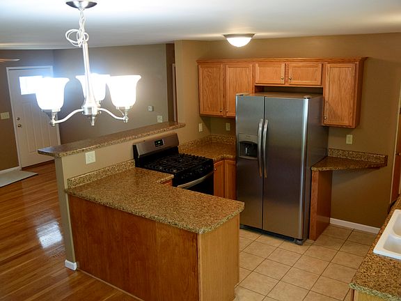 This beautifully renovated home in a quiet Vienna neighborhood has been made ready for you and your family to move right in! It has been completely renovated from top to bottom with modern colors, including; breathtakingly finished hardwood floors, neutral carpet in the Master Bedroom, ceramic tile in the kitchen and both bathrooms, and all new stainless steel appliances, including a dishwasher and fridge with ice and water in the door. It has also received a brand new hot water tank, a new roof, and maintenance free vinyl siding, as well as a heated, finished garage with an automatic opener, and a large covered back deck! The open concept living room, dining and kitchen area, are highlighted with resplendent oak cabinets with stunning granite look counter tops, and both bathrooms are equipped with Moen faucets, and over toilet storage cabinets. The Master bedroom comes complete with a private bath and large shower with a seat, and there is new, modern lighting throughout the entire house. All new sewer drains, new PEX plumbing water lines, and upgraded 200 Amp electric service, combined with insulated windows and doors, as well as aluminum soffit and gutters, make this a worry free decision, that also includes a very nice yard with easy maintenance landscape and shrubbery, featuring a large covered front porch with simulated stone and vinyl shakes. There is plenty of storage here as well, with lined closets and additional storage in the hallway and family room, as well as a full basement, which has been half finished, and a 10 x 12 storage building, boasting lights and electric outlets. To top it all off, this home sits on a quiet, dead end street with minimal traffic. All you have to do is move in, and enjoy!