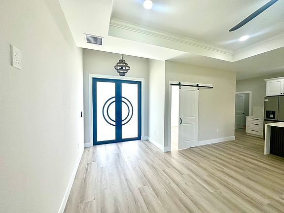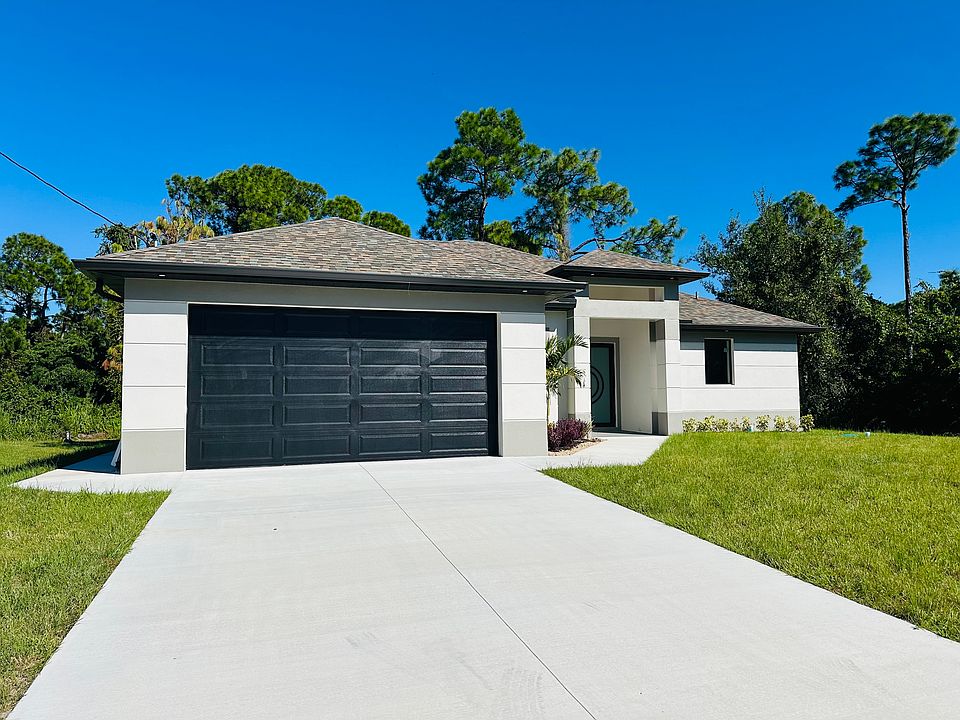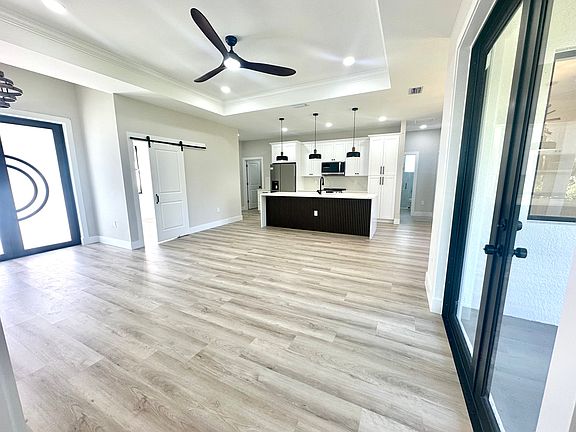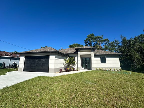 Beautiful new construction, never lived 3 bedrooms, den, 2 bathrooms, and 2 car garage residence located in the desirable SW Lehigh Acres neighborhood. This home offers a bright, open floor plan with plenty of natural light and sleek luxury vinyl plank flooring throughout that complements the modern atmosphere. Enjoy a spacious kitchen featuring brand new stainless steel appliances, quartz countertops, white shaker cabinets, a big island, open living and dining areas, and generously sized bedrooms with ample closet space. The master suite includes his and her walk-in closets, private bath, double vanity, walking shower, and modern LED vanity mirrors. Conveniently located near Lee Blvd, shopping, dining, and convenience stores. This property combines comfort, style, and accessibility.