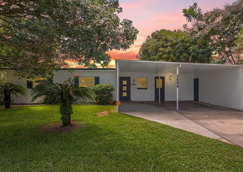 One or more photo(s) has been virtually staged. Opportunity Awaits! A Must-See!! This stunning mid-century modern gem features a spacious oversized fenced lot adorned with mature landscaping and an impressive large covered carport. Enjoy an excellent open floor plan, complemented by brand new interior and exterior paint in custom Sherwin-Williams colors, elegant luxury vinyl plank flooring, and new baseboards. The roof was replaced in 2021, along with a newer HVAC system and appliances. Relax in the beautiful large Florida room that is air-conditioned. The property has a brand new electrical panel, new hot water heater, new toilets, repiped in 2005 and includes an inside laundry room, a security system, an oversized storage closet, and a large shed ideal for extra storage. This remarkable home is located in the picturesque Isle of Catalina, surrounded by Clear Lake, a 357-acre spring-fed lake. Clear Lake offers a community boat ramp, boating, fishing, skiing, and wakeboarding. It is conveniently located near schools, Clear Lake Park, biking trails, playgrounds, shopping, dining, attractions, Millenia Mall, major highways, and downtown Orlando. This property won't last long - it's a must-see! Check out the property video: https://youtube.com/shorts/R3IorEXWYCg?si=6ZJRDvYr6vNupJlk