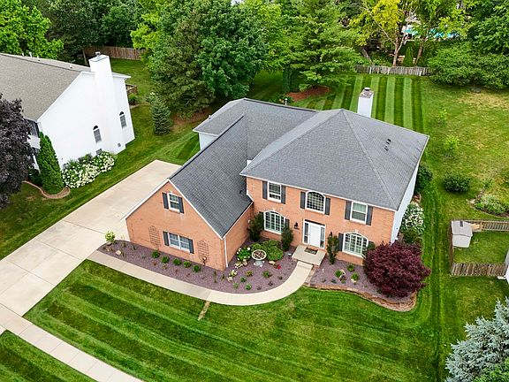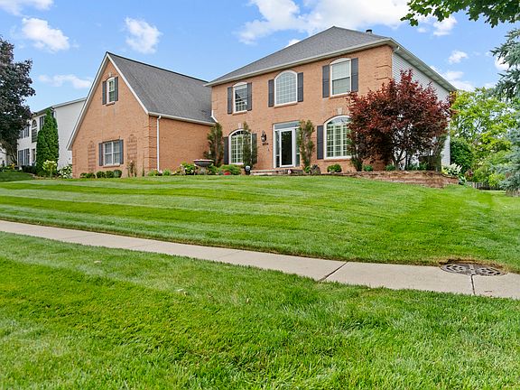 Welcome to this stunning brick home boasting 5 bedrooms, 3 1/2 baths, complete with a spacious 3-stall side-load garage. Upon entering, you're greeted by a grand foyer that flows into the living room and formal dining area. An open staircase overlooks the 2-story family room, anchored by a stone wood-burning fireplace. The kitchen showcases custom cabinets, a large center island, quartz countertops, double ovens, and a walk-in pantry. Upstairs features a split layout, highlighted by a generous primary bedroom suite with an adjoining bathroom and walk-through closet leading to a bonus room above the garage. Three additional spacious bedrooms and a shared full bathroom complete the upper level. Recent upgrades include over $35,000 invested in the basement for a stylish bar, new flooring, and 2nd family room. Be ready to entertain with your very own Speak Easy. Outside, the beautifully landscaped front yard transitions seamlessly to a backyard oasis with a large deck wired for a hot tub. Additional amenities include a new HVAC system installed in 2022/2023, triple crown molding, updated paint, carpet, and light fixtures, a tankless water heater, irrigation system, and a utility refrigerator that remains with the home.