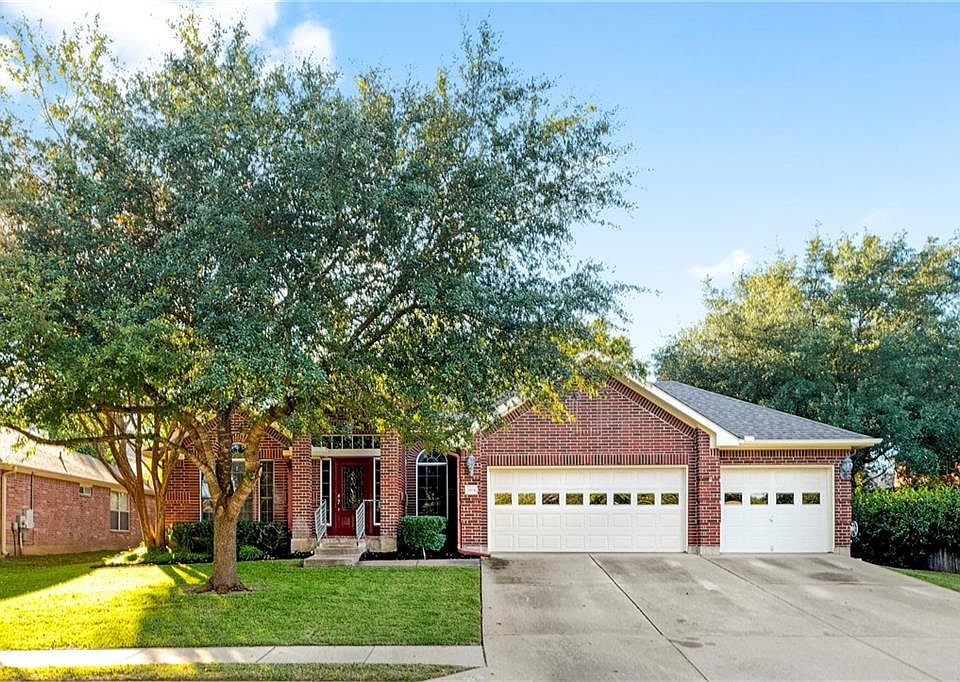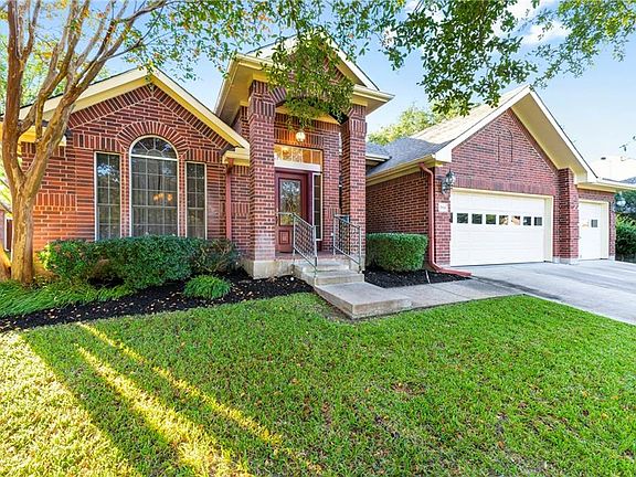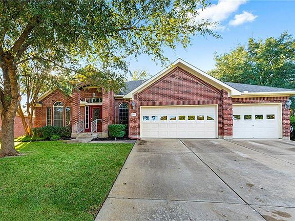 Quality build in lovely Round Rock Ranch. Gattis Elementary inside the subdivision, both lap pool w/park or large swimming pool w/playground amenities. Roof shingles app 4 yrs, all appliances top of the line, less than 4 yrs. H2O heater & softener less than 2 yr. Low maintenance in this stately one-story all brick home with 3-car garage with work shop area, exterior door to back yard where you find a covered and extended patio. Just inside you'll find a formal living/dining combo with a designated office with closet and built-ins. Family room is open to informal dining and large kitchen. Bar height eating, large island, walk-in pantry w/desk area! The wall of windows at the back and skylight in kitchen brings in lots of natural light. Mother-in-law plan with the kitchen separating the master en-suite from the other two secondary bedrooms. Master with double vanity, separate shower and huge walk-in closet. Lots of space all on one floor! No carpet!