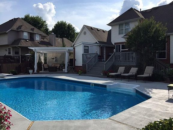 This beautiful 4 bed 3.5 bath home in the established Bentonville neighborhood of Stonehenge/Lexington is a must see. The interior has custom decorative painting, new hardwood floors throughout the main level, new carpet throughout 2nd floor, 3 gas fireplaces, kitchen has granite countertops, new stainless steel appliances, updated lighting and fixtures, office with custom cabinetry and desk, upstairs recreation/bonus room with custom finishes, large walk in closets in each bedroom, instant hot water from the circulating hot water system. Step out to enjoy the back yard oasis featuring a large deck built of composite decking, an oversized saltwater pool with bath house, and a custom built pergola to enjoy relaxing and entertaining. The home exterior is mostly brick and low maintenance, with leafless gutters. The well manicured front lawn of zoysia grass has an irrigation system and fully fenced backyard.