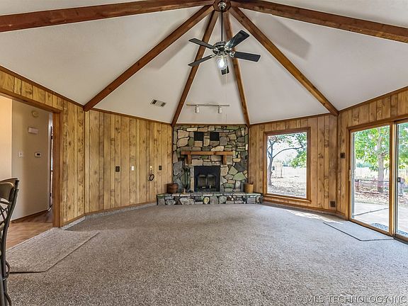 3-bedroom, 2.5 bath 2516 sq.ft. Home on 75 Acres offers the perfect blend of comfort and functionality for rural living. Interior features a warm and inviting living room area with a cozy Rock wood burning fireplace. A separate dining area & Spacious kitchen w/ ample storage, solid wood cabinets & breakfast bar. Tranquil sunroom with fireplace, ideal for relaxation. Large office w/ built-in cabinets for a productive work environment. Skylights throughout for natural light. Master suite featuring a walk-in closet, cedar lined. Fully fenced backyard, perfect for pets or creating a chicken coop. Relaxing covered patio for enjoying the fresh air. Koi pond garden adds a touch of serenity. Pecan, fruit, and pear trees provide delicious homegrown produce. Energy-efficient geothermal AC and double pane windows for year-round comfort at low costs. Rural water and Well provide water options for both home and livestock.
