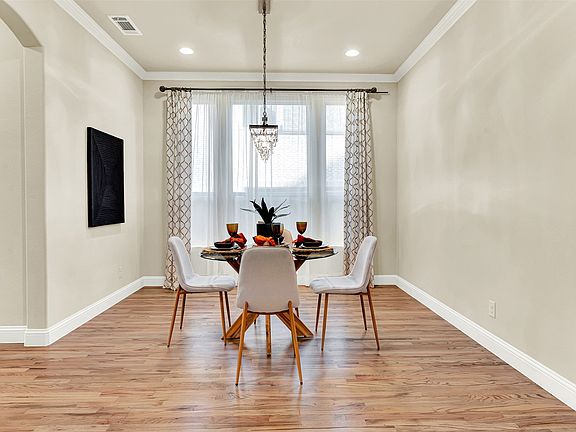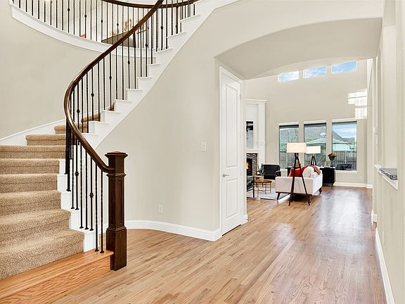 Be prepared to FALL IN LOVE with a beautifully designed 5 bedroom home offering 4,361 square feet of elegant living space in the sought after Mustang Lakes community. Thoughtfully crafted for both everyday living & entertaining, this home perfectly balances sophistication & comfort. Step inside to find soaring ceilings, designer lighting, hardwood floors & a curved staircase in the grand entry. Hardwood floors recently refinished to a stylish, contemporary light tone. Private study provides a perfect sanctuary for working from home. An abundance of natural light fills the open-concept kitchen, dining, & family room. The gourmet kitchen is every cook's dream, featuring premium finishes, ample storage, spacious island, decorative lighting, double ovens & a gas cooktop. It flows seamlessly to the breakfast room & inviting living area, making it an ideal space for hosting gatherings. Retreat to the spacious primary suite featuring a spa-like ensuite bath with separate vanities, separate shower & walk in closet. Family members & guests can rest comfortably in the generously sized secondary bedrooms, each with its own ensuite bath. For leisure & entertainment, enjoy movie nights or watch your favorite game in the media room or spacious game room upstairs. The showstopper is the outdoor living space which is complete with a covered patio & custom pizza oven, perfect for al fresco dining under the Texas sky. The yard offers plenty of room for relaxation and play. Life in Mustang Lakes means more than just a stunning home, it’s a vibrant lifestyle. Enjoy resort-style amenities including a state-of-the-art fitness center, resort-style pools, sport courts, miles of walking trails & scenic parks. The community’s award-winning clubhouse is the hub of activity, offering year-round events that bring neighbors together. Zoned to the reputable Prosper ISD & the highly rated Walnut Grove High School. This stunning home offers a lifestyle that promises never-ending enjoyment & luxury.