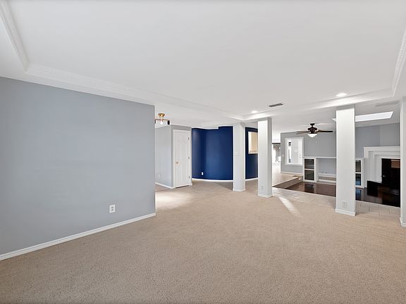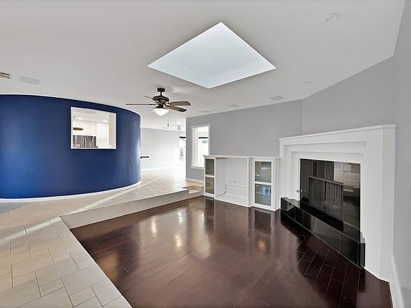 Inside, the home flows effortlessly with two living areas, two dining spaces, and an open-concept layout made for hosting big family gatherings — one of the sellers’ favorite parts of the home. The sunken living room brings a touch of retro-modern flair, while the circular kitchen with black granite countertops is both fun and functional.