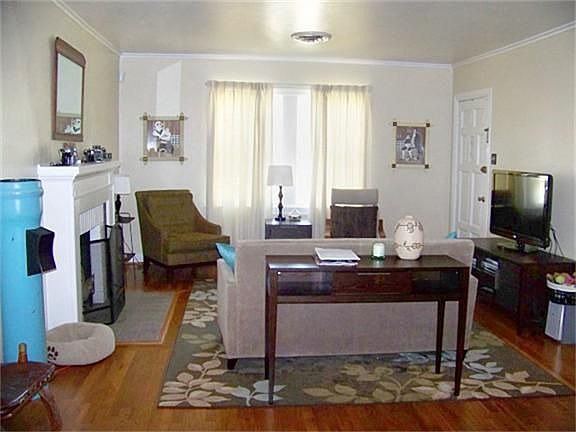 Huge living area greets you with fireplace & original, stunning hardwood floors. Bright kitchen features ample cabinet space, GE range, stainless steel sinks, archways plus breakfast nook with pantry. Large Master bedroom has closet space & hardwood floors. Attic is 80% floored! Unique utility workshop with sink, windows and private toilet. Beautiful treed & fenced backyard-perfect for entertaining