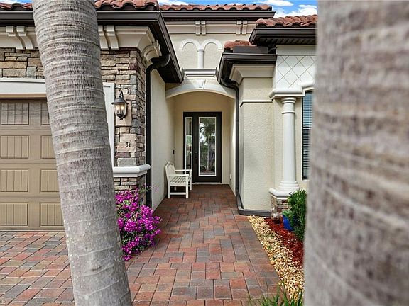 PICKLEBALL and BOCCE are officially coming to Bonita National! Live like royalty in this "Princeton" home at Bonita National. Enjoy western exposure and sunset vistas over the sparkling pool and spa and lake in the backdrop. Built in 2019 and meticulously cared for, this home features tile floors throughout keeping you cool and comfortable, a light and bright color scheme, built-in cabinets, custom mirrors, a coffered ceiling in the living room, wood ceiling at the lanai, and a built-in grill that's perfect for entertaining. Imagine sipping your favorite beverage on the lanai as the sun sets over the horizon, painting the sky with vibrant hues. This home is more than just a place to live-it's a sanctuary where you can unwind and enjoy the tranquil ambiance of paradise. Live with great peace of mind knowing you have Impact Rated Windows and no flood zone. As a "Social Member," you can enjoy playing golf May 1 - October 31 for the respective daily fee. Bonita National has the best amenities in Southwest Florida such as championship-style golf by Gordon Lewis, an over-sized practice tee, putting and chipping green, grand clubhouse with formal and informal dining, golf pro shop, locker rooms, card rooms, 8 Har-Tru tennis courts-lighted, full-service spa, attended fitness center, resort-style pool with rock waterfall and poolside bar and grill. Come live the extravagant lifestyle at Bonita National. Located in the heart of SWFL, close to Bonita Beach, dining, shopping and RSW Airport.