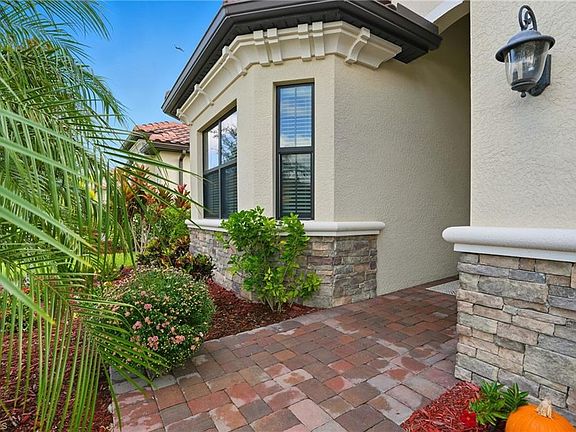 Introducing a rarely available Angelina model in the highly sought-after Bonita National Golf & Country Club—where elegance, comfort, and resort-style living truly come together. This stunning 3-bedroom, 2-bath home is one of the most desirable floor plans in the community. Better than a model, this beautifully designer-decorated home is truly move-in ready and offers the perfect blend of coastal elegance and casual sophistication. The open-concept layout effortlessly flows from the great room to the gourmet kitchen and dining areas, creating an ideal space for relaxed living and effortless entertaining. The gourmet kitchen is as functional as it is beautiful, featuring an abundance of cabinetry that offers exceptional storage space for all your culinary needs. Thoughtfully designed with extended upper cabinets, deep lower drawers, and a large pantry area, this kitchen ensures everything has its place—keeping your counters clutter-free and your cooking experience seamless. Whether you love to entertain or simply enjoy an organized home, the generous storage options make this kitchen a standout. A rare vented kitchen hood with exterior exhaust—a highly sought-after upgrade for serious cooks. Slide open the pocketing glass doors and step into your private outdoor sanctuary. The extended screened lanai showcases a sparkling heated salt water pool and spa, a custom-built outdoor kitchen with sink, and generous seating areas for lounging and dining. Thoughtfully placed professional landscape lighting creates an inviting evening ambiance, perfect for entertaining under the stars. Eastern exposure delivers beautiful sunrise views and comfortable afternoon shade on the lanai. Additional features include: Spacious primary suite with lanai access and luxurious ensuite bath, two beautifully finished guest bedrooms, upgraded laundry room with storage and utility sink. Epoxy-finished garage floor with overhead storage racks and custom cabinets, impact-resistant doors and windows for peace of mind and the Lani is equipped with hurricane design storm shades. Located in the resort-style community of Bonita National, offering golf privileges for social member May thru October, tennis, future pickleball courts, fitness center, full-service spa, clubhouse dining, and more! This home offers everything you dreamed of in Florida living—elegance, comfort, and a lifestyle that feels like vacation every day. A must-see in person—homes like this don’t come along often!