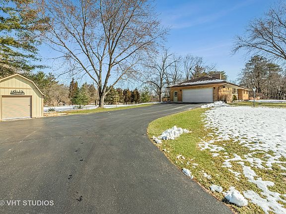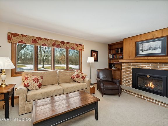 Here it is! Brick and Frame Ranch on just under 2 acres in Unincorporated Lake County! The sellers are the original owners and have maintained this home wonderfully. Updated kitchen with Hickory cabinets, beautiful backsplash and Corian counters. The floors in the foyer, hall, dining room and kitchen are hickory hardwood. Enter this traditional ranch and you will find the living room with gas log fireplace (conversion in 2018) and large windows with a full retractable shade on your left. Continue on to the dining room and kitchen where you will find sliders to a FABULOUS 3-season room. What a great space to enjoy meals, read, observe the abundant wildlife, watch TV or work on crafts. The possibilities are endless. There are 3 large bedrooms and a large updated bath on the main level in addition to the 2-car attached garage. There is a full basement with work room, laundry/utility room and huge family/rec room with barnwood look sturdy paneling. Basement is well insulated. The grounds are beautiful and sit high above the nearby Volo Bog, in an area with larger divided parcels. Long blacktopped driveway leading to the barn style shed and home. Come and take a look, You won't be disappointed. It is a great place to call home! Kitchen update 2021, Chimney tuckpoint and gas log conversion with stainless liner 2021, New Well 2018, New Furnace and A/C 2016, Roof 2010.