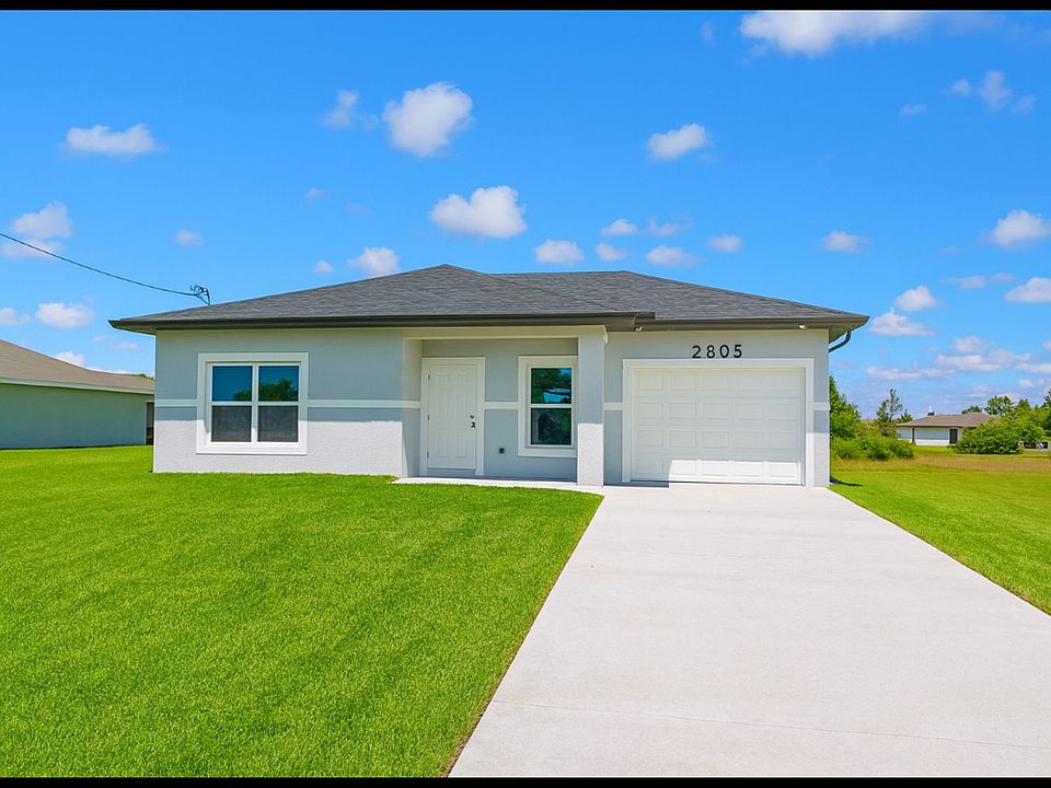 Welcome to your dream home in Lehigh Acres, FL! This brand new, move-in ready home is a gem in the heart of the city. With two spacious bedrooms and two full bathrooms, this cozy cottage is perfect for those who value comfort and style. The primary bedroom comes with an en-suite featuring a large tiled shower. The home boasts all-tile floors throughout, adding a touch of elegance and ease of maintenance. The eat-in kitchen is a chef's delight, equipped with stainless steel appliances, granite counters, wood shaker cabinets, and a pantry for ample storage. The open front porch and covered rear lanai offer perfect spots for relaxation. The large backyard is a blank canvas for your outdoor activities. The home also features impact windows for added safety. The oversized one-car garage includes a washer and dryer hook-up for your convenience. This home is conveniently located close to downtown Lehigh and SR 82, providing easy access to FT Myers. It's also near all the amenities Lehigh Acres has to offer. Pets are welcome in this friendly neighborhood. Don't miss out on one of the lowest priced new construction homes in the area. See it today and make it yours!