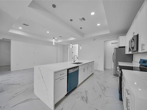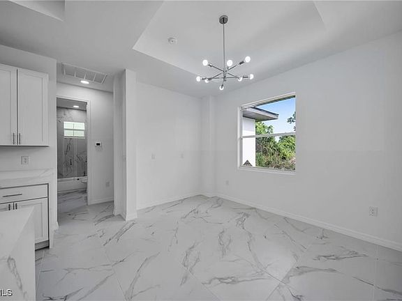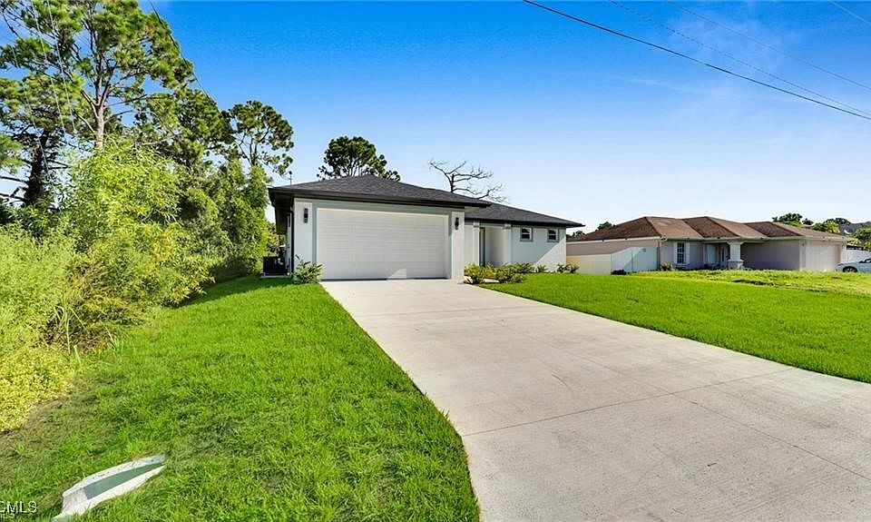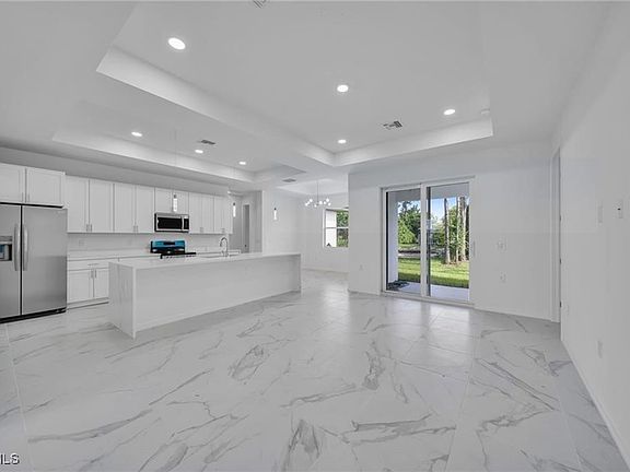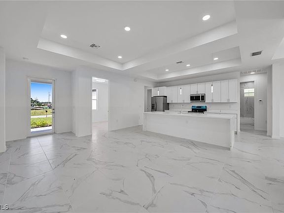 New construction featuring 3 bedrooms, a den, 2 bathrooms, and a spacious open floor plan filled with natural light. Highlights include a jumbo-sized kitchen island, white cabinetry, quartz countertops, and stainless steel appliances. The primary suite offers dual walk-in closets and a walk-in shower. Porcelain tile throughout, plus a separate indoor laundry room for added convenience. Enjoy a covered lanai, landscaped yard, and large backyard—perfect for entertaining. 2-car garage and 1-year builder warranty included. Move-in ready!
