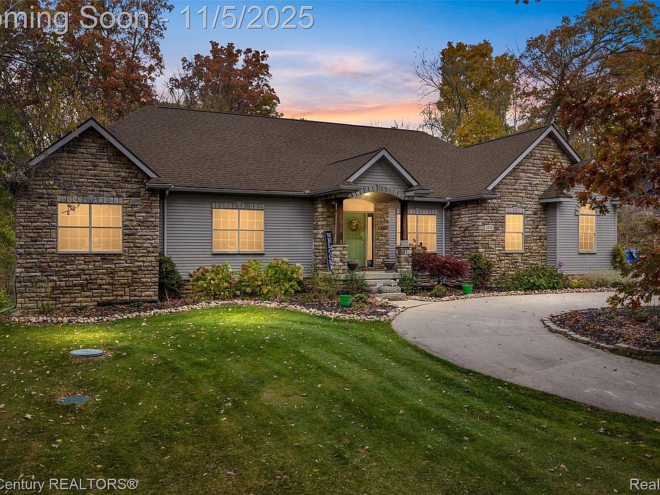 Get ready for one of the coolest entertainer style homes on the market! 2805 Acorn Lane is a custom ranch with more than 4000 square feet of finished living space on 2.67 private acres and has been continuously improved and upgraded since 2021. If you love to entertain, crave the perfect setup for extended family and guests, or want serious space and privacy, this home checks every box. The main level offers a true open concept layout with a spacious great room, dedicated office, walk in pantry, first floor laundry and a huge primary suite with walk in closet and spa style bath. Two additional bedrooms and a full bath complete the main floor. The walkout lower level is designed for fun. Enjoy a massive rec room with room for games, sports, movies and gatherings of any size, along with a second full kitchen, full bath and a second primary suite with double closets. With so much natural light and multiple doorwalls, you will forget you are in a basement. Outside, the entertaining continues with a stamped patio, fire pit, new gazebo, deck bar, hot tub and plenty of space to host the largest backyard gatherings. Since 2021, the sellers have made incredible improvements including a new roof, new gutter guards, new furnace, new AC, new carpet, new radon mitigation system, new sump pump, new refrigerator, new well pressure tank, water softener and filtration system, new built in oven and microwave, tankless water heater, new backyard stairs and a full house generator hook up. With 4 bedrooms, 3 and a half baths, 2 full kitchens, a 3 car garage, township approval for an outbuilding and no HOA, this property has it all. Live large, entertain bigger, and enjoy every bit of this incredible property. Welcome Home!
