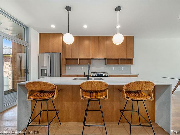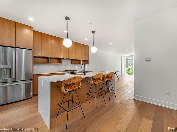 Rare opportunity to move into this luxury 4-story City Modern condo! Available for a November move-in. Many outdoor areas: front porch, 2nd floor balcony & 2 rooftop spaces with great views of the city! This 2 bedroom, 2 and 1 half bath Smarthome includes an attached 2 car garage! The light & airy design features floor to ceiling windows, hardwood floors, custom lighting & closets and touches of brushed gold & matte black throughout! The entry-level mud room has brick detail and step up to the open concept Dining, Great Room & Kitchen w/ a stunning glass wall feature over the staircase. The kitchen boasts stainless appliances, waterfall quartz island and countertops. The 3rd floor has a primary ensuite w/ 2 walk-in closets, triple vanity bathroom, guest bathroom and bedroom w/custom built-ins, laundry area and linen closet. The 4th floor holds a bonus entertaining space w/ wet bar & 2 outdoor decks! Located in Brush Park between Downtown & Midtown offers many conveniences out your front door!
