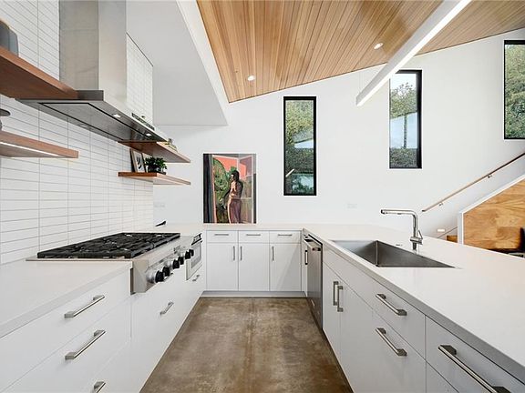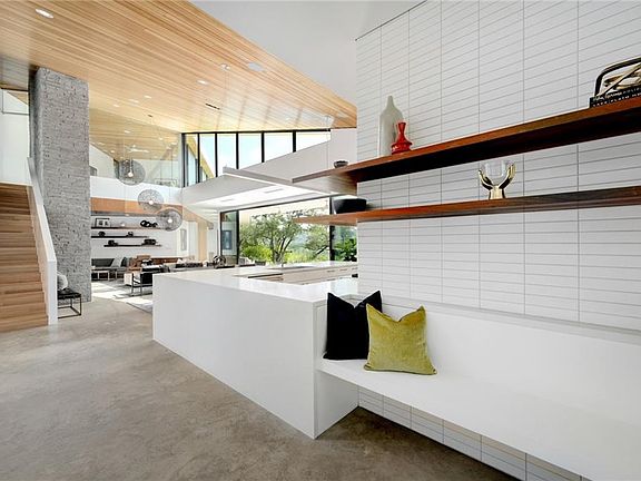 AIA masterpiece on the best greenbelt lot in Austin. Known as Baldridge Architect's "Branch House" this stunning one-of-a-kind masterpiece was built in 2016 and featured on the AIA Homes Tour the same year. A work of architectural art, the thoughtful design takes advantage of the best views of the Barton Creek Greenbelt and Texas Hill Country that you've ever seen. Tucked into a wooded and serene half acre home-site, the property has a sophisticated and unassuming presence that opens up dramatically upon entering the home. Once inside, a wall of windows opens up completely blending the outdoors with indoors and bringing that breath-taking view right into your living space. The open concept living and dining areas feature soaring ceilings juxtaposed with comfy reading nooks and cozy spaces around every corner. A secondary living space and home office upstairs lead you to a spacious Ipe deck and outdoor living space with a higher than bird's eye view for as far as you can see. The second-story space features a flexible floorplan that could easily function as a 4th bedroom + living room or a private luxury guest suite. Other features include 1 million gallon, Rhino Aquasana, whole house water filtration system, heated pool with an ultra-violet cleaning system and cleaner jets, a DCS natural gas outdoor grill, high-end built-in appliances including wine fridge, gas fire-pit on the ground level with gas plumbed for another possible fire pit on the upper deck, wood burning fire-pit in the front courtyard, gas fireplace in the main living room, LUMA video security system, outdoor speakers on upstairs and downstairs patio and in the atrium, multiple outdoor living spaces including a ground-level, custom viewing deck overlooking the greenbelt. This ideal location offers convenience to Downtown Austin, miles of hike and bike trails, Zilker Park, Barton Springs, multiple greenbelt entrances, and South Lamar shopping, dining, and entertainment.