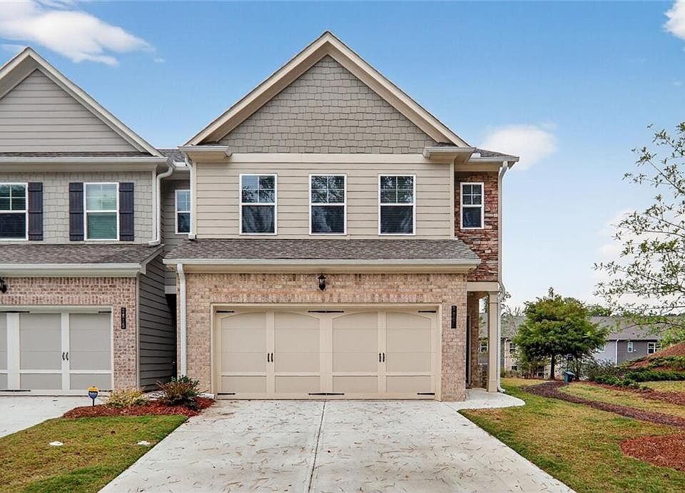 Beautiful end-unit townhome in the desirable Summit at Peachtree Corners community featuring one of the most unique outdoor settings in the neighborhood. Enjoy tree-lined views, a grassy park area, and scenic walking trails with pet waste stations and outdoor workout equipment right outside your door. This move-in-ready 3-bedroom 2 1/5 bath home with a two-car garage offers a light-filled, open-concept layout with a bright kitchen featuring stainless steel appliances, an oversized quartz island, and white soft-close cabinets. The spacious dining area is perfect for hosting, while the living room offers a cozy gas fireplace for relaxing evenings. Step onto the private covered porch to enjoy your morning coffee or peaceful bird watching. Upstairs, the spacious primary suite includes a tray ceiling, a spa-like bathroom with a soaking tub, a glass shower, and a large walk-in closet. Two additional bedrooms, a full bath, and a convenient upstairs laundry room complete the second level. This home combines modern finishes, low-maintenance living, and access to great community amenities — all in a prime Peachtree Corners location close to shopping, dining, and parks.