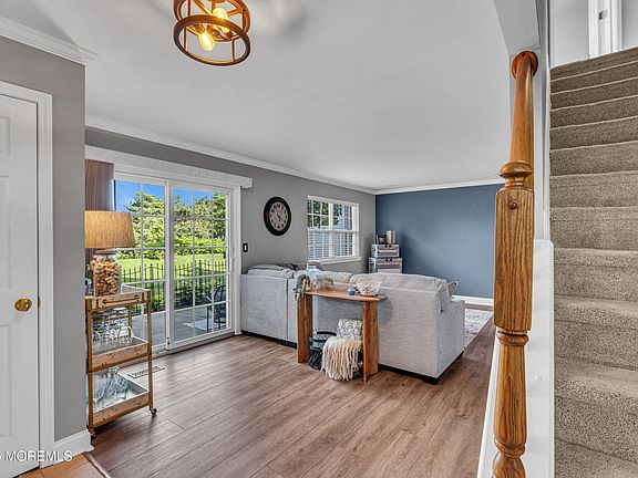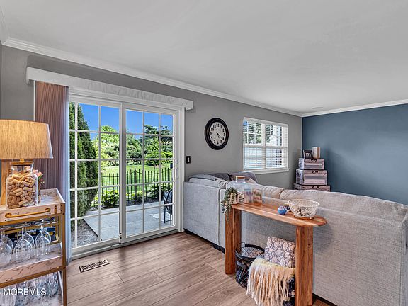 This stunning end-unit townhome offers 2 spacious bedrooms, 2.5 beautifully updated baths, and a full finished basement—providing the ideal blend of comfort, style, and functionality. Step inside to discover an excellent floor plan featuring a bright and airy living room, a formal dining area, a convenient half bath, and a beautifully appointed eat-in kitchen. The kitchen is a chef's dream with stainless steel appliances, granite countertops, a dedicated coffee bar, pantry, and abundant cabinet space. Sliding doors off the living room open to a private patio—perfect for your morning coffee or evening unwind. Upstairs, you'll find two generously sized bedrooms and two updated full baths. The primary suite boasts a large walk-in closet with custom shelving and a spa-like ens ensuite bath complete with double sinks, a Jacuzzi tub, and a separate stall shower. The second bedroom features a closet system, and the fully renovated hall bath even includes a convenient laundry chute that delivers clothes straight to the laundry room below. The finished basement offers endless possibilitieswhether you envision a cozy movie room, a playroom, home gym, or additional living space. You'll also find a spacious laundry room with ample storage. Enjoy community amenities like the brand-new playground and tennis courts, all while being just minutes from Route 9, major bus routes, shopping, and fantastic dining options. Don't miss your chance to own in this desirable communityschedule your tour today and make this townhome yours!