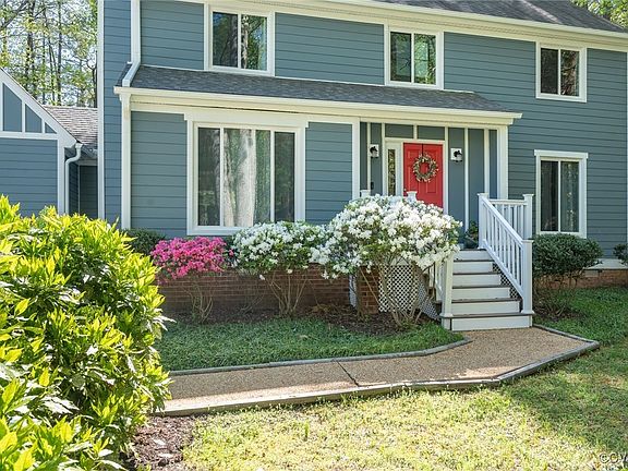 Loaded with major updates and ready to impress, this timeless two-story home blends classic charm with a touch of mid-century modern flair. $70,000+ in updgrades. 2 New HVAC systems. Total Kitchen renovation. Windows 2023. Water Heater 2021. Roof 2020. Security cameras with motion sensors 2024 Ideally located on a quiet cul-de-sac and nestled under a canopy of mature trees, with ivy gracefully draping the front yard, this peaceful retreat in Brandermill has 2,147 sqft. The main level features a cozy family room with wood burning fireplace that opens to a sun-filled eat-in kitchen showcasing new cabinetry with quartz countertops, a large island with bar seating, workstation sink, new stainless steel appliances and bay window. Glass doors lead to a spacious rear deck surrounded by a picket fence and settled under a serene wooded landscape—perfect for morning coffee or evening relaxation. The dining room overlooks a sunken family room with 9' ceilings creating an open and airy atmosphere. You’ll also find a convenient laundry room with cabinetry, laundry chute and a window for natural light. Upstairs, you’ll discover 4 spacious bedrooms, with a primary bedroom that includes an attached private bathroom, walk-in closet, skylight, dual vanities, and makeup area. The expansive walk-up attic has been restored and offers a multitude of storage with the potential to be finished into additional living space. The one-car garage features a pedestrian door, built-in cabinet storage, and a dedicated workspace. Hardiplank exterior, encapsulated crawl space, new slate accents, fresh landscaping, and newly installed stone pavers enhance curb appeal and add durability. Embrace the Brandermill Lifestyle, enjoy the amenities and nearby Harbour Pointe—boating, fishing, and breathtaking sunsets on the 1,700-acre Swift Creek Reservoir. Explore 15 miles of scenic biking and walking trails, 3 outdoor pools, multiple playgrounds and parks, and a network of neighborhood connections that make this community truly one-of-a-kind.