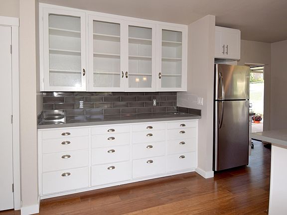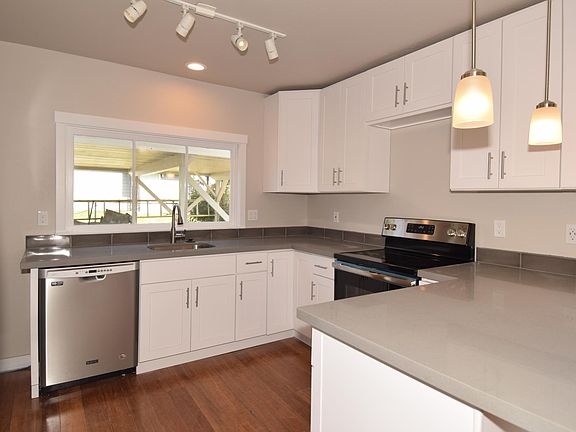 Discover this remodeled Olympic Hills home with sleek updating and vintage charm. Featuring bamboo hardwoods, built-in dining area hutch, and gleaming quartz counters. Enjoy the convenient comforts of a dishwasher, washer, dryer, double paned windows, flash water heater and forced air gas heat. There are two bedrooms and two 3/4 baths (bathroom with shower). Relax outside on the deck or enjoy the fenced front yard. There's a carport and additional off street parking. 12 mo. lease minimum. Tenant pays utilities. Close to shops, restaurants, and great transportation options including Northgate and Shoreline light rail stations. Pet ok with approval. 12 month lease minimum.