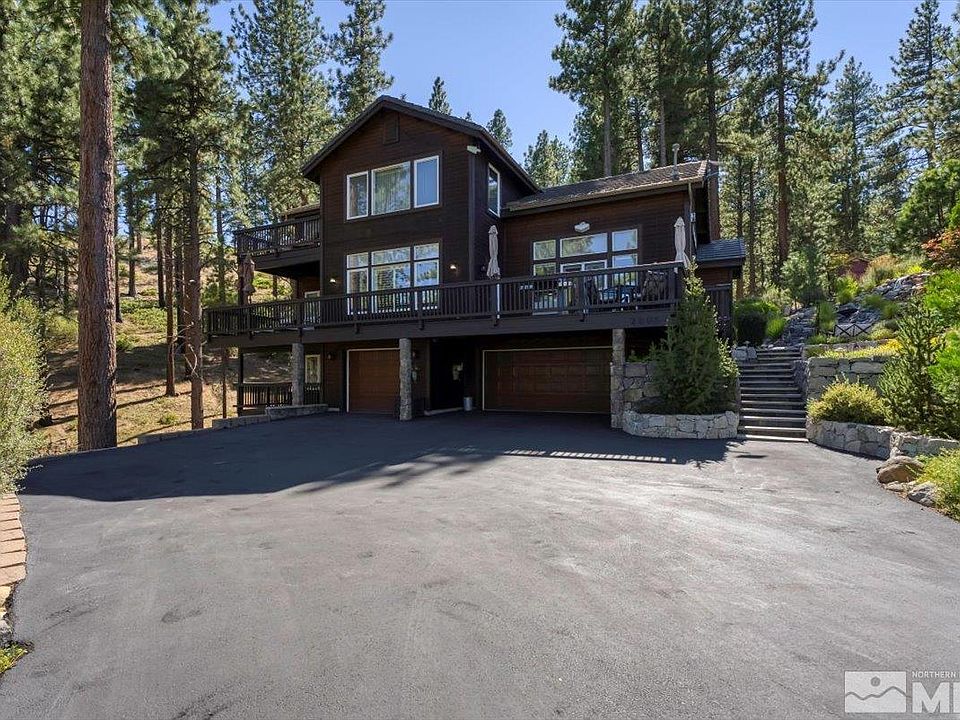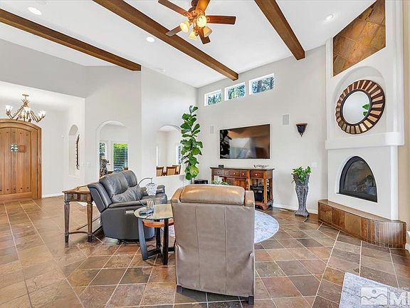 Welcome to Franktown! This impressive Custom Mountain Home sits on 5 acres offering modern luxury with serene rural living. Featuring a private primary suite w/ two-sided fireplace, impressive bathroom w/laundry chute. Kit, new Quartz countertops, new S/S appliances, new carpet, and toilets. Private balconies, Incl., heat cables for snow melt, new well pump (2023), whole-house filtration and generator, knotty alder cabinets. 20 min to Reno and Mount Rose Ski Resort, 30 min to Lake Tahoe. MUST read ext!, This home has the WOW factor! Offering a unique blend of serene elegance and modern luxury. Offering filtered and peak views of Washoe Lake, surrounding mountains and serene views. Professionally landscaped with custom rock work, a pond with a spectacular water feature which complements the area's natural beauty. Imagine the soothing sounds of the waterfall with no distractions—just pure serenity. From the moment you arrive, you’ll notice the exceptional care and attention to detail the owners have lavished on this home. Meticulously manicured trees surround the property, providing both privacy and a sense of seclusion while ensuring defensible space. A seasonal creek meanders through, adding to the peaceful ambiance and offering a retreat right in your backyard. Inside, every detail has been thoughtfully considered. Entering the house the grand feel of the expansive windows, high ceilings of the sunlit great room with views of the valley and mountains. The private primary suite is a sanctuary, featuring a two-sided fireplace that warms both the bedroom and its impressive ensuite bath with dual sinks, large garden tub surrounded by custom stone work and etchings. Start your day at the walk-up coffee bar, complete with a sink and refrigerator—coffee, please! A laundry chute offers direct access to the laundry room, adding a touch of practicality to the home’s luxurious amenities. The heart of this home is its stunning gourmet kitchen, outfitted with gleaming new quartz countertops, stainless steel appliances, large island, custom knotty alder cabinets. A gas fireplace in the kitchen brings rustic charm to the modern design. Peacock Slate flooring throughout the main living areas with custom etching enhances the home’s natural beauty, while fresh paint and new carpet creates an inviting atmosphere. The large dining room and outside decks and garden patio provides year-round entertainment. The two additional bedrooms have ensuite bathrooms with custom stonework, large closets and covered private decks. Designed for all seasons, the home includes roof heat cables for safety and comfort during snowy winters. The property also features a new well pump and a whole-house generator and water filtration system. Shade screens maintain a cool interior during summer months, and the in-ground propane tank preserves the property's beauty. Even your pets will enjoy their private space, complete with a custom-fenced dog area and their own house! For outdoor enthusiasts, this property is a dream come true. Nearby hiking, boating, and golf. Washoe Lake is minutes away, and Mt. Rose Ski Resort and Lake Tahoe are 30 minutes away. The home provides ample storage for all your gear. Whether you're enjoying the serene rural setting or the modern luxury within, this home offers the best of both worlds. The 3car garage and ‘mancave’ workshop for storage and projects. This home has been meticulously maintained. The list of amenities and features is expansive!