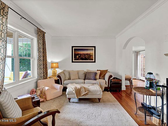 A charming and updated mid-century cottage located in the heart of Wilmington along desirable Park Avenue in the Cape Fear Country Club area! The front porch welcomes you home and overlooks the large greenspace across the road for a scenic view in the city! Once inside, the hardwood floors stretch throughout and guide you past the wood burning fireplace in the family room to the open kitchen and dining room at the heart of the home! Additionally downstairs, you will find two cozy bedrooms and shared bathroom + a perfect home office or flex space on your way to the garage. The primary retreat is upstairs and offers a private bath and laundry. The back deck and patio are great for entertaining as friends can gather around the outdoor fireplace or spread out around the large backyard. Tons of options are available here as you can utilize the rear alley for additional access to the property. Updates include all new windows, doors (except the front door which is original to the home), cedar shake siding, HVAC, Water Heater and roof. The property has natural gas, the sewer line was recently replaced to the street and the power lines are underground as well! Additional extras include updated kitchen appliances, outdoor shower and Trex on the rear deck! This unique opportunity won't last long, so take advantage to make Park Ave 'home!'