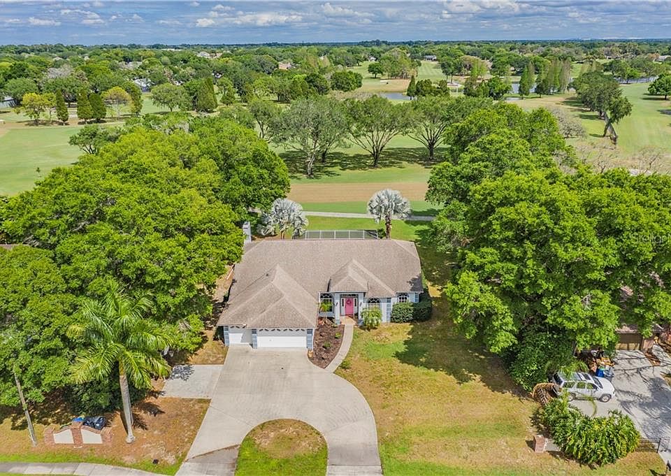Welcome home to your LUXURIOUS OASIS!! Updated POOL home with STUNNING, SCENIC GOLF COURSE VIEWS (no rear neighbors) and NO HOA or CDD fee!! Circular driveway and 3-car garage leave plenty of room for your vehicles, golf cart, and any other toys! The pink front door sets a tropical, spa-like vibe as you enter to find gleaming engineered hardwood floors throughout, regal TRACE CEILINGS, and a view of the glistening pool with inviting lounge area through almost every window. This home has all the bells and whistles with countless custom upgrades. Kitchen has 44' wooden cabinets, gorgeous granite counters, porcelain tile, stainless steel appliances, and additional cabinets built into the wall serving as a pantry with a tremendous amount of storage space. All cabinets and drawers are soft close! MOVIES ANYONE? Enjoy downtime in front of the big screen with your favorite flick on the movie projector any time of day with the help of the tinted window and blackout curtains behind you...And/or cozy nights and holidays in front of the fireplace with a glass of wine. This home is an entertainer's dream, ready for you to create beautiful memories here. The rooms in this 4/3 flow into one another with an open, inviting floor plan with TONS of CLOSET SPACE! Newer roof (est. 6 years), newer A/C (est. 2015), and water softener which will convey with purchase. 2 separate living room areas and space for formal dining. According to the owner, this was one of the original model homes for the Buckhorn subdivision. An optional donation/contribution to the Buckhorn HOA allows for participation in various festivities, including the "Easter Bunny Parade," park events, and access to the Buckhorn community park, just one mile away from the home. Valrico is known for its EXCELLENT SCHOOLS and prime location close to all major highways and plenty of shopping and restaurants. Make it yours in time for the new school year, and to spend the summer practicing your swing at the Buckhorn Springs Golf & Country Club! Settlement activity reported and remediated back in 2005. Engineer's report available. Schedule your private showing today, or see tour links for both 3D/Matterport & Video Tour for a virtual walkthrough!