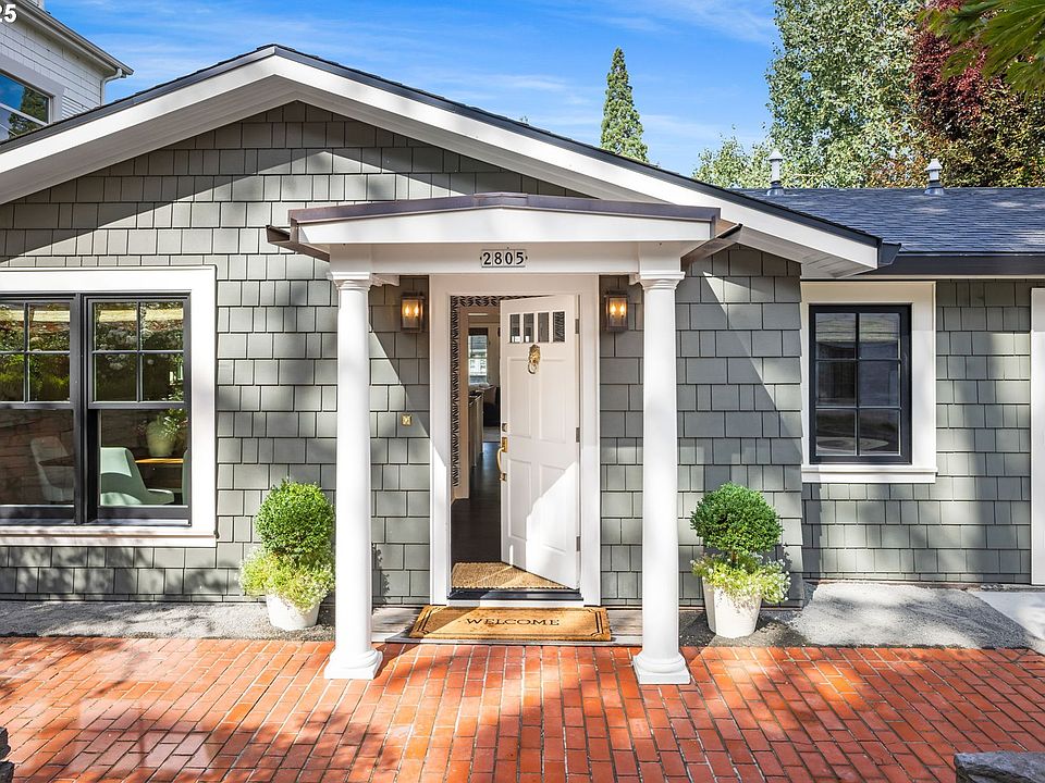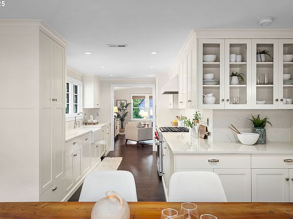 This darling jewel box home will steal your heart! Thoughtfully updated with designer finishes, this gem is a beauty. A formal entry with gorgeous built-in's welcomes you inside. Dark espresso floors add a hint of luxury throughout. The dining room is adjacent to the kitchen of your dreams, featuring lovely painted cabinetry, quartz counters, and loads of storage. The living room is spacious and airy and boasts a sunny deck, perfect for late summer BBQ's. A guest suite on the main could be a second primary suite option or bonus living space. The lower level features 3BR/2BA, including a primary suite, a sunny family room surrounded by windows, and a charming desk nook. French doors in the family room lead to a cozy covered deck. A rare, flat backyard is the "cherry on top". Storage abounds in the attached storage shed and multiple built-in's. Updated Electric, Plumbing, HVAC, Roof, Gutters, Windows, Siding, Paint etc.). Too many updates to list!!! Ask for FEATURES LIST. Perfectly located in Portland Heights, just 10 minutes to Downtown, NW 23rd, Washington Park, Providence Park, MAC Club, OHSU and so much more! Easy access to Hwy 26/Tech Corridor. Highly rated schools. A sweet place to call home! [Home Energy Score = 5. HES Report at https://rpt.greenbuildingregistry.com/hes/OR10241256]