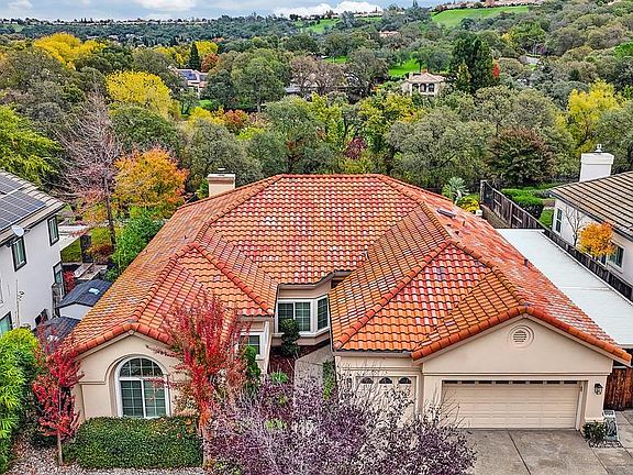 Single-story home in the desirable Estates at Whitney Oaks neighborhood, offering serene greenbelt views and a beautifully updated interior. Set on nearly a quarter-acre lot backing to open greenbelt, this 4-bedroom, 3-bath plus office home features approximately 2,583 sq ft of bright, open living space. The formal living and dining areas include French doors that open to a covered patio, creating seamless indoor-outdoor flow. The kitchen has been tastefully updated with new quartz countertops, new stainless-steel appliances, freshly painted white cabinetry and a walk-in pantry. Kitchen opens to the family room, complete with a cozy fireplace and large picture windows overlooking the backyard. Primary suite offers a cedar-lined walk-in closet, soaking tub, and double vanity. Additional updates include new flooring throughout and fresh interior paint. Step outside to your private backyard featuring a sparkling pool with waterfall sheer descents, multiple covered patio spaces, and plenty of room for entertaining. A covered side-yard area provides additional parking for a boat, van, or recreational toys, complementing the attached 3-car garage. Located near Whitney Oaks Golf Club, top rated schools, parks and shopping. Enjoy the peaceful environment of Whitney Oaks with no HOA fees.