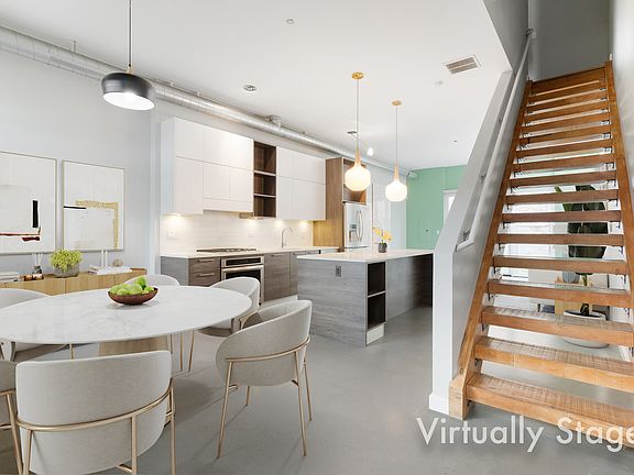 Thick timber stairsHigh ceilingsTwo generously sized bedroomsLarge islandQuartz countertopsDedicated dining areaItalian cabinets