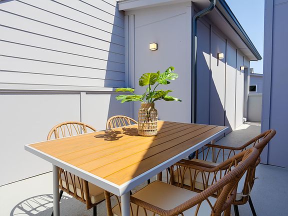 Rooftop patioWasher and dryerWood faux window coveringsStainless steel kitchen appliances