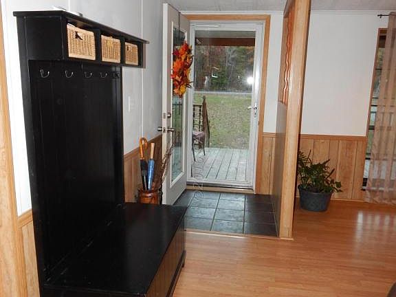 Peaceful living in this 3 bed 2 bath 1,400 sq ft home. This home features an open floorplan, master with bathroom and convenient laundry, vaulted ceilings throughout, ceiling beam, cozy woodstove, laminate wood flooring throughout, large dining room with tons of natural light, a great front porch, sliding doors leading to a large back deck, and a 2.5 car detached garage. All on almost an acre of land!