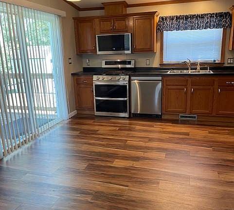 This beautifully maintained and updated three-bedroom, two-bath home is a must-see! The home comes fully equipped with a stove, microwave, refrigerator, dishwasher, garbage disposal, and central air for year-round comfort. A dedicated laundry area adds everyday convenience. The open-concept layout allows the kitchen to flow seamlessly into the dining and living areas, creating the perfect space for both daily living and entertaining. The kitchen boasts new appliances, countertops, sink, faucets, ceiling fans, a new storm door, and an updated exterior door. Step outside to a brand-new, spacious deck-ideal for entertaining, dining, or simply relaxing. Adding to its appeal, this property offers the rare benefit of three-car parking. Call us today to schedule your personal tour of this home and community. Showings are by appointment only. We look forward to hearing from you! Discover, Visa, Mastercard, and AMEX are now accepted at this location, some restrictions apply. Contact the sales office for details. Price is subject to change without notice. Qualified buyers may receive financing thru 3rd party lenders.
