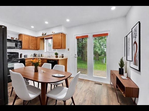 French door access to the back patio off the dining room. Convenient entry level half bath off the kitchen. Two large bedrooms share a full bath on the upper level. Features new high end laminate flooring & new washer & dryer.