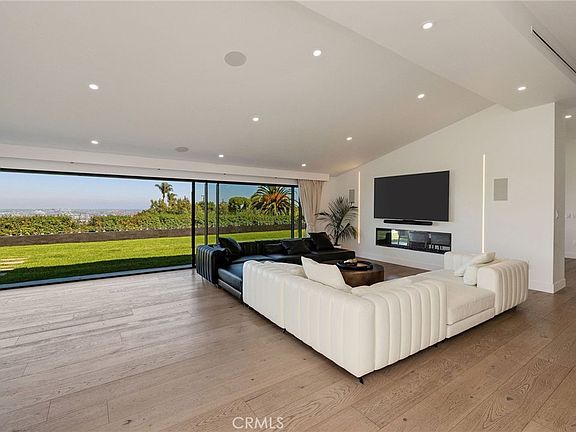 Enjoy the Long Beach skyline and LA Harbor as you enter through the oversized glass pivot door into an open floor plan designed for living and entertaining. The chef’s kitchen features black-and-white Dalmatian marble, Rohl fixtures, a large island and a suite of Viking appliances: 6-burner range, double ovens, counter-depth refrigerator and dual dishwashers. Wide-plank hardwood runs throughout; floor-to-ceiling sliders and bifold doors connect the interior with the backyard. A two-way glass fireplace anchors the great room; motorized curtains, recessed LED lighting and built-in AV are integrated.