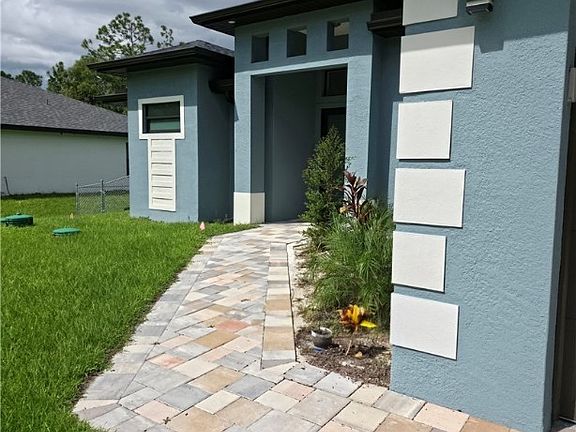 Welcome to your oversized custom built 3 Bedroom 2 bath + Office room contemporary home ready for your active family lifestyle. Enjoy your large granite island countertops and window sils making your home looking always fresh and new for years to come! This one of a kind new construction built home includes thoughtful dedicated places of enjoyment such as full dining room ready to seat as many family and friends can fit. Your modern home welcomes you with up to 16ft high ceilings with wide open rooms. Relax and enjoy your oversized patio including 2 entry ways with 2 large fans ready to entertain. Your large backyard is ready to have fun in the sun with the little ones and even ready for your future pool! Backyard features a variety of fruit trees ready to enjoy with the family. Front door and WINDOWS ARE HURRICANE IMPACT ready for your peace of mind. This home is located within a few blocks of LEE BLVD conveniently located towards Sunshine Blvd. or downtown Lehigh Acres near Walmart. QUIET NEIBORHOOD ON A DEAD-END ROAD perfect for family to enjoy the outdoors anytime! Close to local elementary, middle and high schools within less than a 10 min drive! Your home has everything to keep your growing family entertained. Come see your next home today! Send your offer and get your family ready to enjoy their beautiful home for years to come!