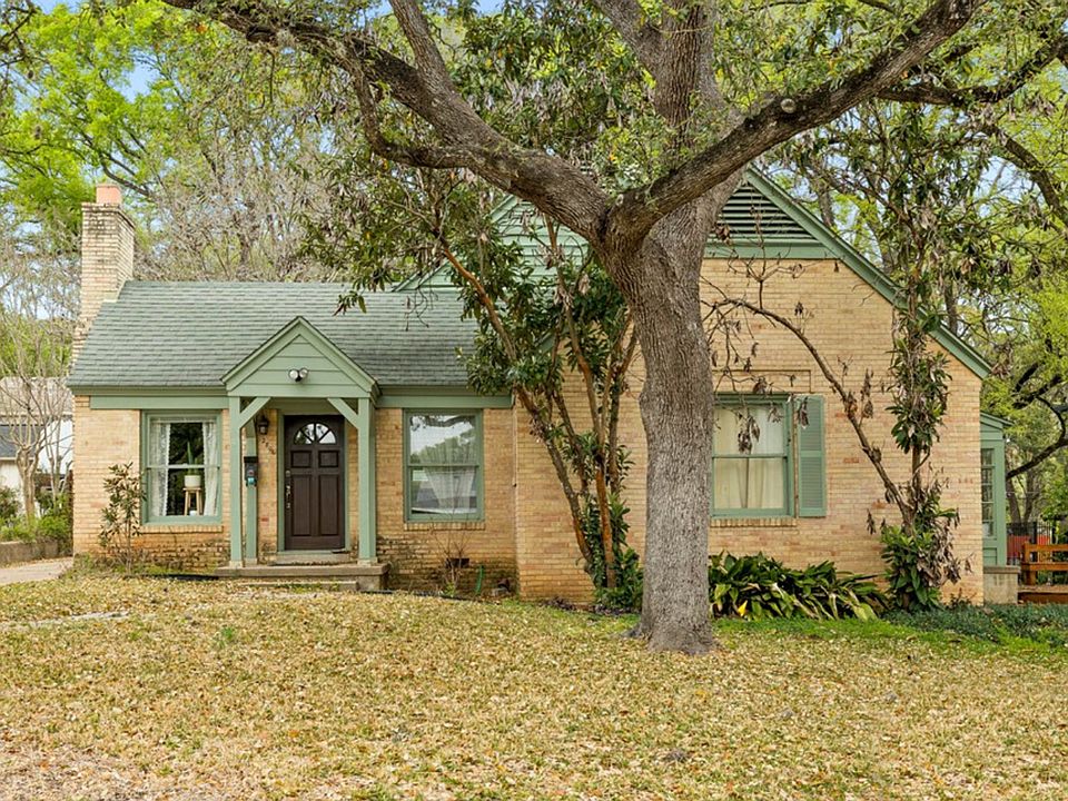Wood burning fireplaceOld stone fire placeShady backyardTarrytown brick homeHardwood floorsGlassed-in sunroomBonus room