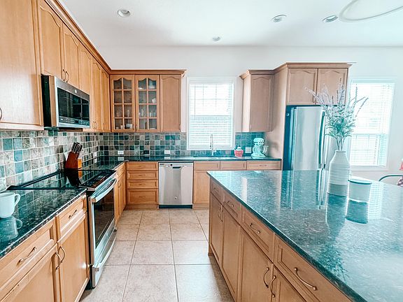 The large living room features an open layout with stunning countertops and a beautiful island, which is ideal for family gatherings and casual entertaining. The kitchen is a chef's delight, providing ample space for meal preparation.