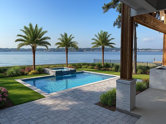 This exceptional lakefront home offers breathtaking views from every room and a design that blends elegance with functionality. Highlights include soaring ceilings, arched details, and a gourmet kitchen with butler’s pantry, wine fridge, propane range, and a dedicated wine storage room. The main level features a private guest suite and office, while the upper level offers three bedrooms and an oversized bonus room—perfect for a bunk room, theater, or game space. The primary suite is a retreat of its own, with patio access, a spa-style bathroom featuring dual showerheads, a soaking tub, and a custom closet connected to the expansive laundry room. Outdoor living shines with a covered patio, full outdoor kitchen, swimming pool w/ hot tub, and private boat dock—ideal for entertaining or relaxing by the water around the clock! Estimated completion: November 15th. Buyer may still personalize select finishes—an extraordinary opportunity to create your dream lakefront retreat.