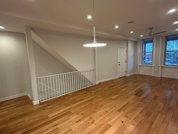 This beautifully upgraded apartment offers modern finishes in a quiet, well-maintained building. The kitchen is equipped with stainless steel appliances, including a French door refrigerator, quartz countertops, a waterfall island, under-cabinet lighting, a dishwasher, and a garbage disposal. Hardwood floors run throughout the home, complemented by recessed lighting and elegant herringbone tile flooring. Large windows provide abundant natural light, and the unit includes a stackable washer and dryer as well as a sump pump for added peace of mind. This unit also has private access to the large rear yard.