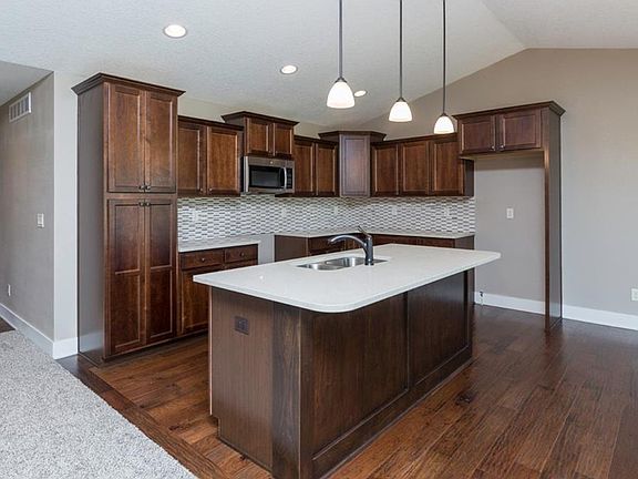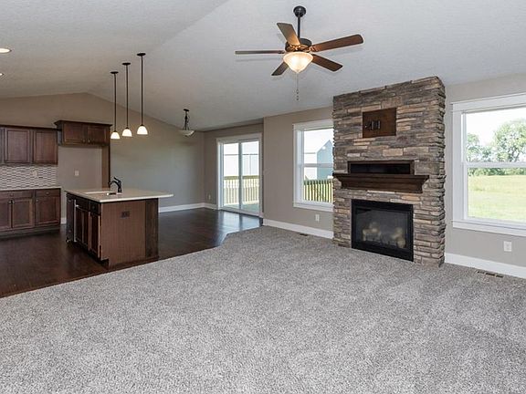 Classic Builders presents the Hamilton Ranch plan with 4 bedrooms, 3 full bathrooms and 3 car attached garage. Split bedroom plan with two bedrooms in front of house with full bath leading to living room with stone fireplace. Open kitchen with painted cabinets, quartz countertops, tile backsplash, center island and hardwood flooring that extends into the dining area with sliders to the deck. Large master suite and master bath featuring double vanity, tile shower and walk-in closet with access to the laundry room. Over 815 sq. ft. finish in the lower level offers a spacious family room with full bath and 4th bedroom. Home is HERS energy certified and comes with a 1 year builder warranty. Pictures similar to Classic Builders Hamilton Ranch plan.