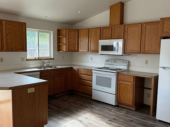 This Duplex offers an open floor plan with vaulted ceilings, huge kitchen with lots of cabinet space and island peninsula. All new flooring, paint and appliances. Fenced in backyard. Heat pump with A/C. Washer/Dryer hook ups. Call for a showing today!