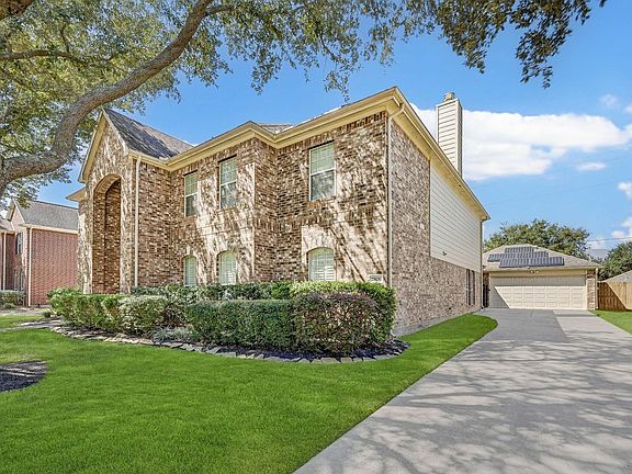 Step into maticuosly kept home. located in Katy’s desirable Falcon Ranch that blends timeless design with modern comfort. Set on a spacious lot, this home offers something rare — privacy in every room while still embracing open, light-filled living. Hardwood floors greet you at the entry and flow through the dining and living areas, anchored by a stone fireplace. The kitchen connects seamlessly to the family and breakfast rooms, while a private study and downstairs primary suite create quiet retreats. Upstairs, each bedroom is thoughtfully placed for separation and personal space. Outside, a covered patio with gas connections ,overlooks the resurfaced pool and landscaped yard, creating your own private oasis. Recent upgrades include new A/C units, solar panels, updated appliances, and pool improvements. Conveniently located near schools, shopping, and dining, this home delivers both function and style — a true Katy gem designed for today’s lifestyle!