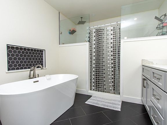 Location! Location! Location! This beautiful home sits on a spacious quarter-acre lot and offers the perfect blend of comfort, style, and functionality. With 3 bedrooms, 3 full bathrooms, and a newer roof (2019), it's move-in ready and designed to fit your lifestyle. Step inside to an open and inviting living room, perfect for both lively gatherings and quiet nights in. The fully renovated kitchen will impress any home chef, featuring quartz countertops, a gas cooktop, in-wall oven, and abundant cabinetry for all your cooking and storage needs. The thoughtful floorplan provides privacy and space for everyone: Two bedrooms with a shared hallway bathroom featuring dual sinks and a tub/shower combo. A private en-suite bedroom with its own updated bath and walk-in shower. A spacious master suite retreat on the opposite side of the home, complete with backyard access and a luxurious bathroom with dual sinks, soaking tub, and walk-in shower. A cozy family room with fireplace adds flexible living space ideal as a 4th bedroom, home office, or game room. Step into the backyard and imagine the possibilities:summer BBQs, outdoor fun, dream garden or even adding a pool. All this, with Bear Creek Galleria's shops and restaurants, bike paths, and tree-lined walkways just minutes away!