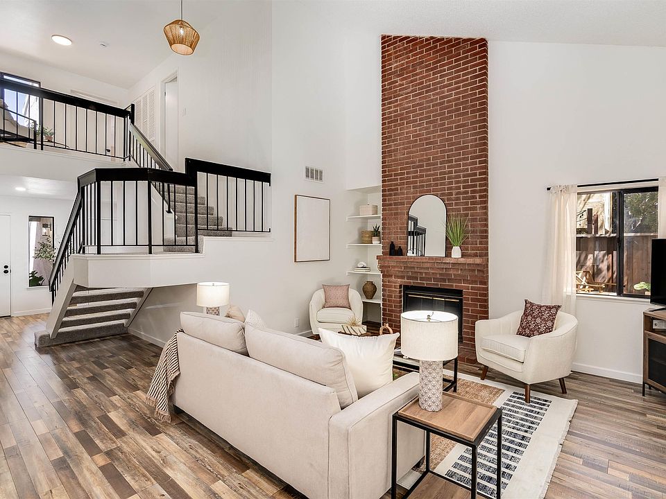 Welcome to 28061 Thorup Ln, nestled in Hayward Highlands Skyview community—where hills, trails, & treetops become part of everyday life. Enjoy the private front patio—perfect for your morning coffee or evening wine. This Northeast-facing home welcomes you with fresh paint, newer LVP flooring, newer carpet, & light fixtures. Vaulted ceilings in the living area create a warm, open feel—ideal for relaxing or entertaining. The kitchen boasts a stylish newer backsplash, & the bathrooms have newer vanities & floors for a clean, refreshed look. A bedroom & bathroom downstairs offer flexibility for guests, multigenerational living, or a home office. Step out to the deck & take in the peaceful surroundings of nature. Each bedroom upstairs has a bathroom, so no sharing! The primary has newer LVP flooring & lots of light pouring in! Don't forget to step out back & enjoy the green landscape & sounds of nature! Close to Cal State East Bay, Ziele Creek Trail, Garin & Dry Creek Pioneer Regional Parks, plus local shops & restaurants. Easy access to BART & major freeways makes commuting a breeze. The community features a pool, spa, clubhouse, BBQ area, & playground—everything you need to unwind & feel at home. Welcome Home! Possible first time home buyer credits to help with rate!