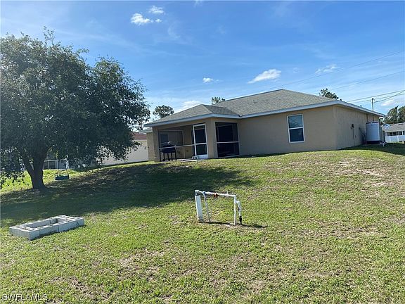 Popular First Home Builders model. Located in desirable Southwest Lehigh this home features 3 bedrooms and 2 baths with a screened lanai. This home has a fabulous great room, open floor-plan with cathedral ceilings. The master bedroom and bath are secluded on one side of the home for privacy. The other two bedrooms share a central full bath between them. The spacious living room opens to the kitchen with sliding glass doors to the large screened lanai with beautiful private back yard. The home comes complete with all kitchen appliances, including microwave oven. Nice covered front porch welcomes you to sit and relax. Easy access to shopping, restaurants, I-75 and State Road 82.
