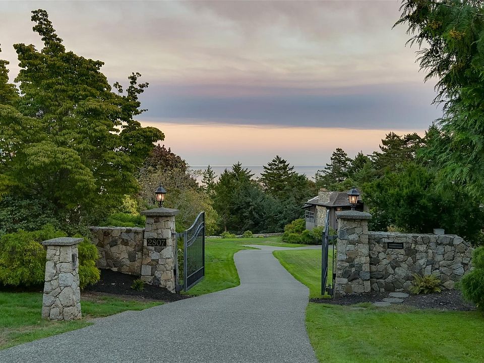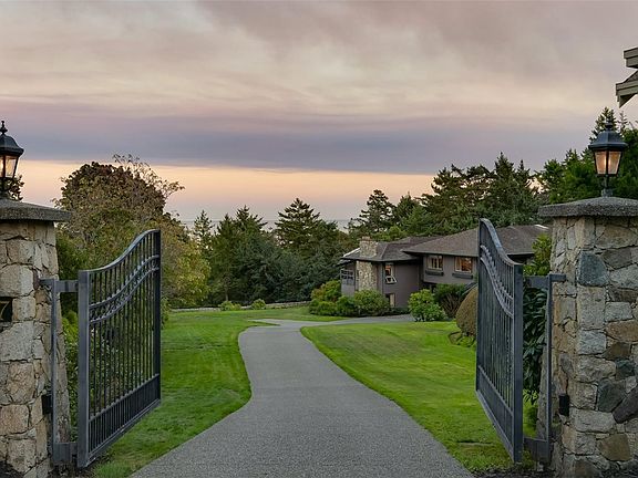 Privately set behind gates on one of the most exclusive lots in Wedgewood’s Ten Mile Point, this custom-built 1984 home sits on over half an acre, backing onto Phyllis Park with ocean views. The main living area features vaulted ceilings and oversized windows that capture natural light and treed privacy, while the kitchen connects to a sun-filled solarium with gorgeous views. A dedicated dining room is perfect for entertaining with direct access to the deck. The primary suite offers a private deck, fireplace, walk-in closet, and ensuite, with two additional bedrooms, full bath, and laundry completing the upper level. The main floor includes a private office with deck and powder room, and the lower level boasts a spacious recreation room with walkout, additional bedroom, and sauna. A two-car garage, ample storage, and unfinished space perfect for a suite, office, or studio add flexibility. A rare opportunity to personalize a home in one of Victoria’s most prestigious neighbourhoods.